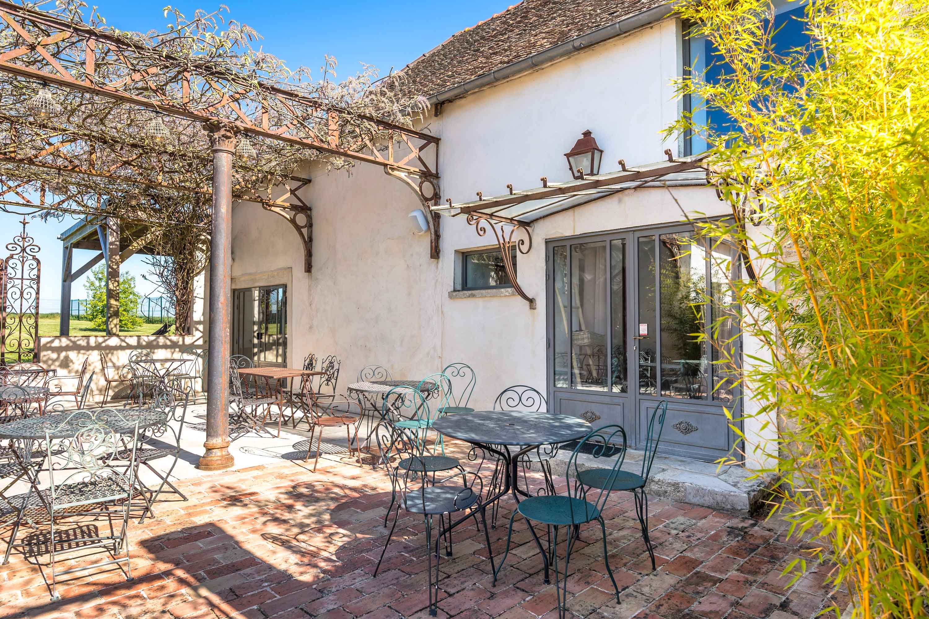 Notre terrasse extérieure spacieuse et notre jardin peuvent accueillir confortablement jusqu'à 200 personnes, offrant ainsi un cadre champêtre idéal pour vos événements en plein air.